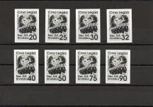 Limited to 500 non-perforated sets with 8 stamps of 20, 25, 30, 32, 40, 50, 75 and 90 Kuna.