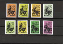 Limited to 500 non-perforated sets with 8 stamps of 1 Kuna (orange), 1 Kuna (yellow-grey), 1 Kuna (orange-grey), 1 Kuna (grey), 1 Kuna (green-grey), 1 Kuna (yellow), 1 Kuna (dark green), 1 Kuna (dark violet-grey).