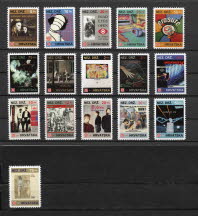 Omoti (music cover) stamp set, issued in 1993 : 70s/80s/90s Synthie Pop, Darkwave, Dark Electro, Italo Disco, Neofolk, ... 1.