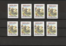 Limited to 500 non-perforated sets with 8 stamps of 1 Kuna, 2 Kuna, 3 Kuna, 4 Kuna, 5 Kuna, 6 Kuna, 7 Kuna and 8 Kuna.