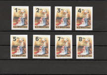 Limited to 500 non-perforated sets with 8 stamps of 1 Kuna, 2 Kuna, 3 Kuna, 4 Kuna, 5 Kuna, 6 Kuna, 7 Kuna and 8 Kuna.