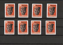 German Veterans Association Handschar : Communist monsters. Complete non-perforated set with 8 stamps.