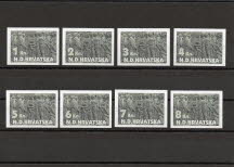 Limited to 500 non-perforated sets with 8 stamps of 1 Kuna, 2 Kuna, 3 Kuna, 4 Kuna, 5 Kuna, 6 Kuna, 7 Kuna and 8 Kuna.