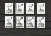 Limited to 500 non-perforated sets with 8 stamps of 1 Kuna, 2 Kuna, 3 Kuna, 4 Kuna, 5 Kuna, 6 Kuna, 7 Kuna and 8 Kuna.