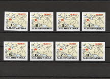 Limited to 500 non-perforated sets with 8 stamps of 1 Kuna, 2 Kuna, 3 Kuna, 4 Kuna, 5 Kuna, 6 Kuna, 7 Kuna and 8 Kuna.
