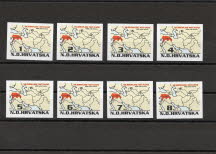 Limited to 500 non-perforated sets with 8 stamps of 1 Kuna, 2 Kuna, 3 Kuna, 4 Kuna, 5 Kuna, 6 Kuna, 7 Kuna and 8 Kuna.