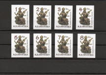 Limited to 500 non-perforated sets with 8 stamps of 1 Kuna, 2 Kuna, 3 Kuna, 4 Kuna, 5 Kuna, 6 Kuna, 7 Kuna and 8 Kuna.