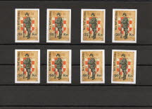 Limited to 500 non-perforated sets with 8 stamps of 10 Kuna, 20 Kuna, 25 Kuna, 30 Kuna, 50 Kuna, 60 Kuna, 80 Kuna and 90 Kuna.