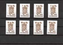 Limited to 500 non-perforated sets with 8 stamps of 0.5 Kuna, 1 Kuna, 2 Kuna, 5 Kuna, 10 Kuna, 20 Kuna, 25 Kuna and 50 Kuna.