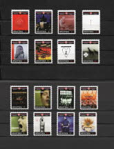 Omoti (music cover) band stamp-set : Rammstein 3. Complete set with 16 stamps, issued in 2024 in Croatia.