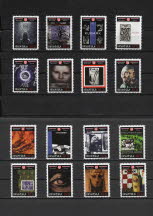 Omoti (music cover) band stamp-set : Neofolk, Industrial, Martial, Ritual, Noise, Rhythm N´ Noise, Dark Ambient 1. Complete set with 16 stamps, issued in 2022 in Croatia.