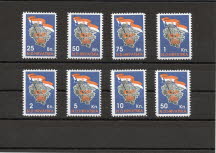 Limited to 150 perforated sets with 8 stamps of 25, 50 and 75 Banica and 1, 2, 5, 10 and 50 Kuna.
