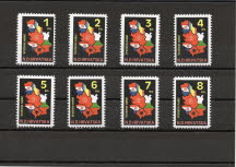 Limited to 150 perforated sets with 8 stamps of 1, 2, 3, 4, 5, 6, 7 and 8 Kuna.