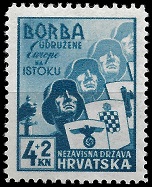 The Volksdeutsche from the Independent State of Croatia issued overprints on German stamps of the “Day of Wehmacht” in 1943 and 1944, which was given to the new members of the division "Prince Eugen".
